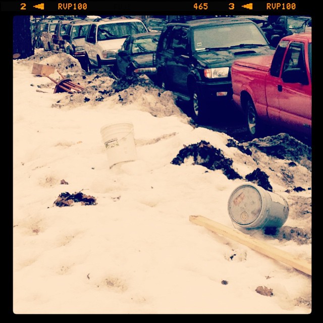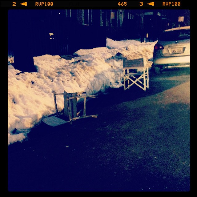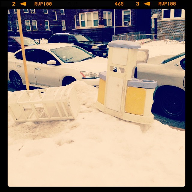 Some nice, high-quality trash, strewn about in the Chicago streets to gain dibs on a parking spot in the winter.
